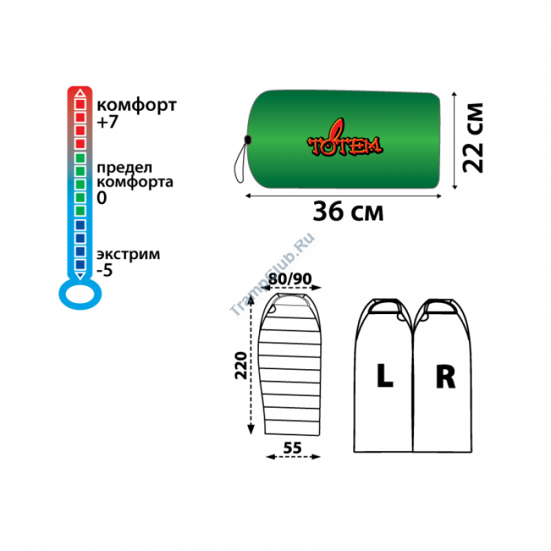 Мешок спальный Hunter XXL Right - Totem TTS-005