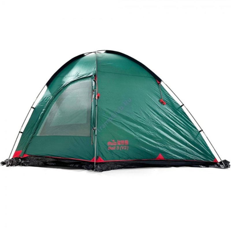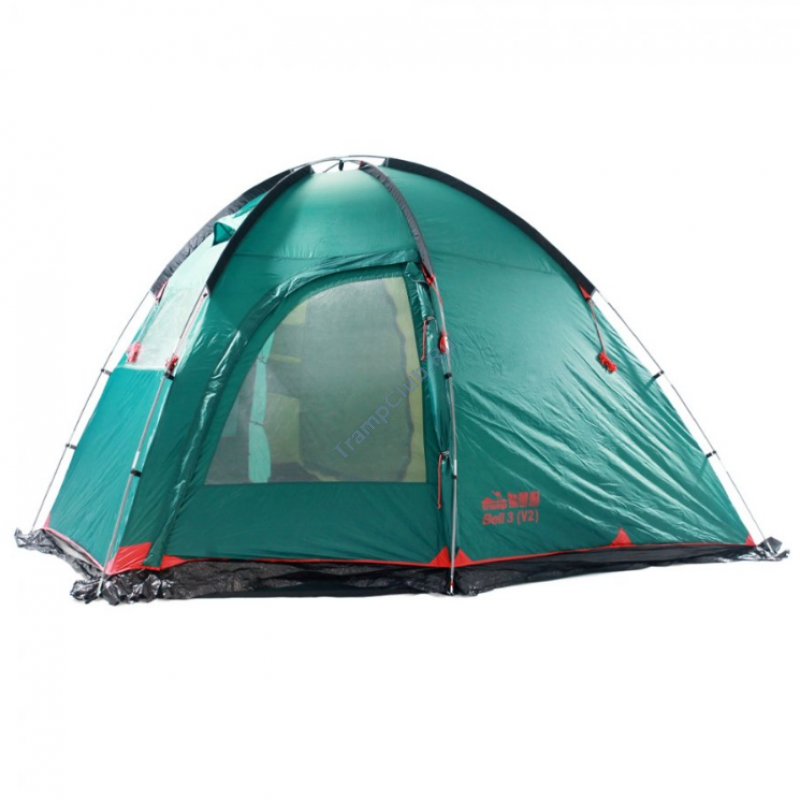 Однокомнатная трехместная кемпинговая палатка Tramp Bell 3 (V2) модель TRT-80 c просторным высоким тамбуром, 2-мя входами и смотровым окном в торцевой стенке.