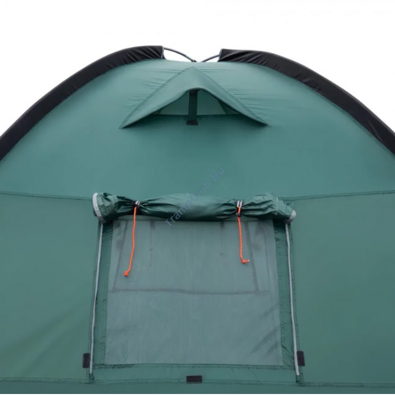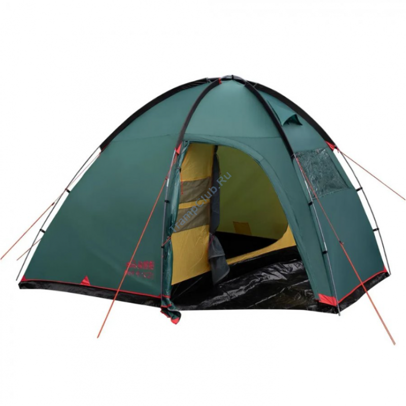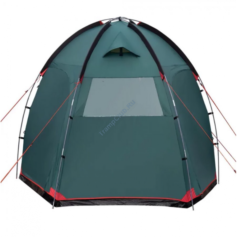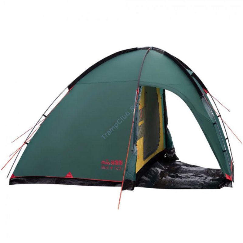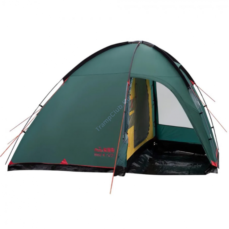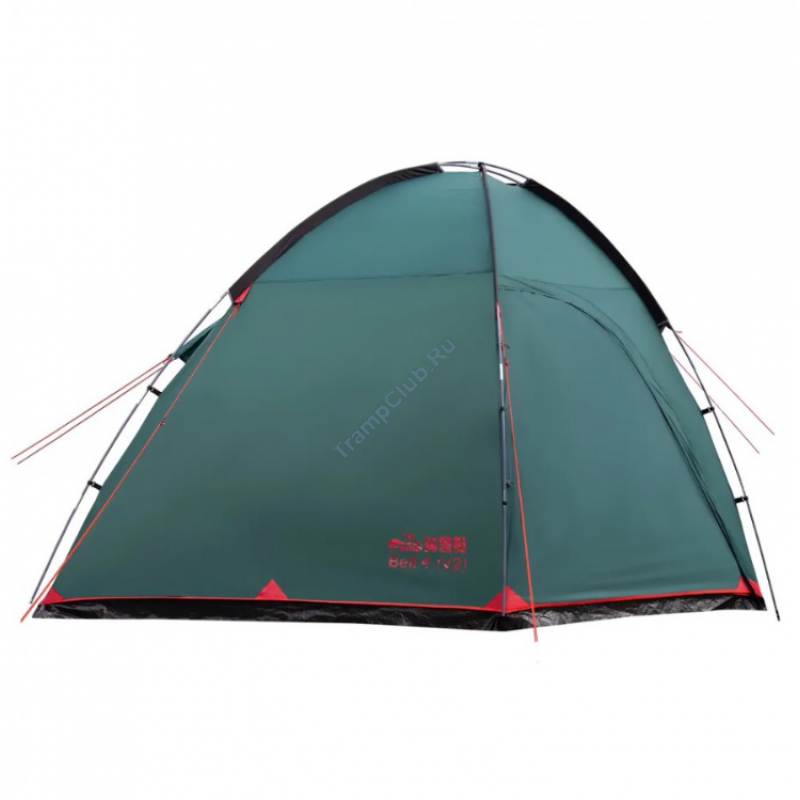 Однокомнатная четырехместная кемпинговая палатка Tramp Bell 4 (V2) модель TRT-81 c просторным высоким тамбуром, 2-мя входами и смотровым окном в торцевой стенке.