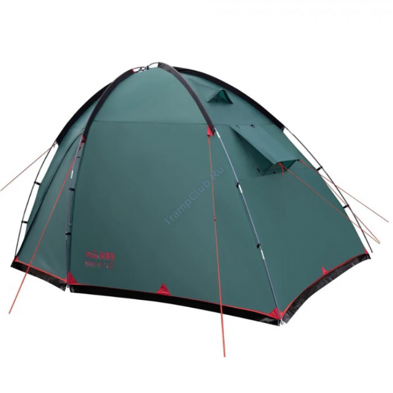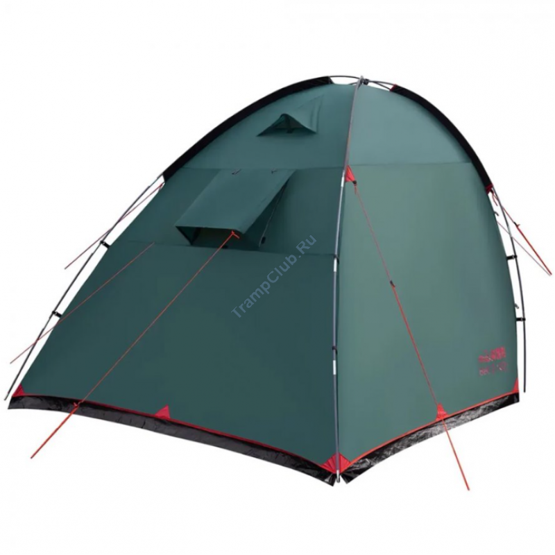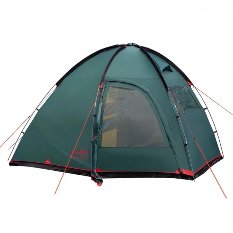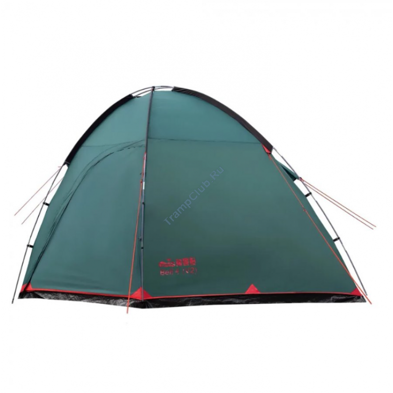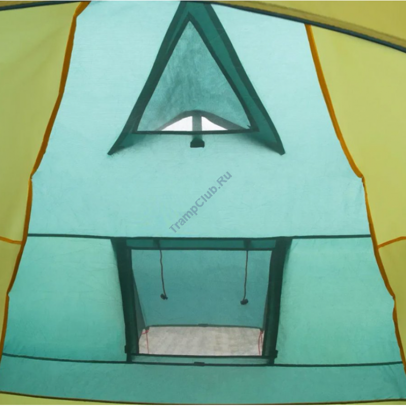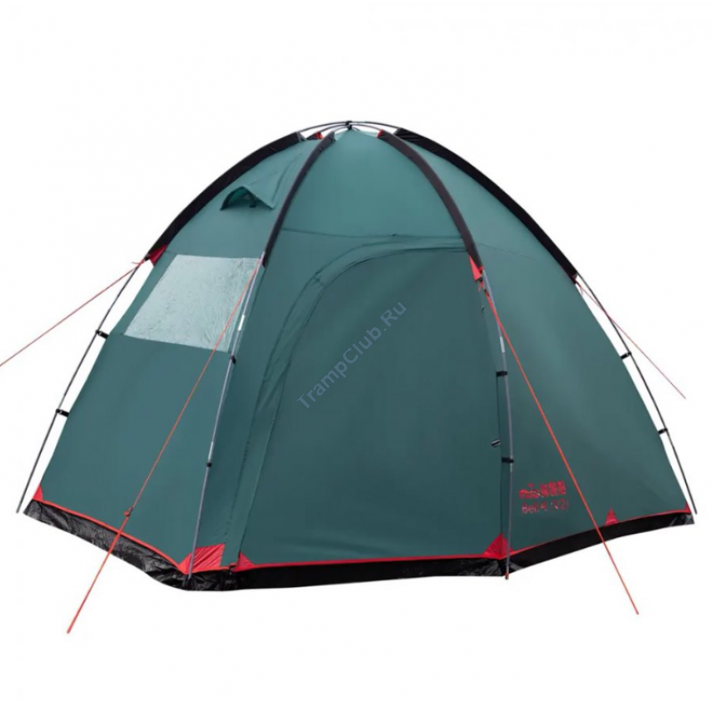 Однокомнатная четырехместная кемпинговая палатка Tramp Bell 4 (V2) модель TRT-81 c просторным высоким тамбуром, 2-мя входами и смотровым окном в торцевой стенке.