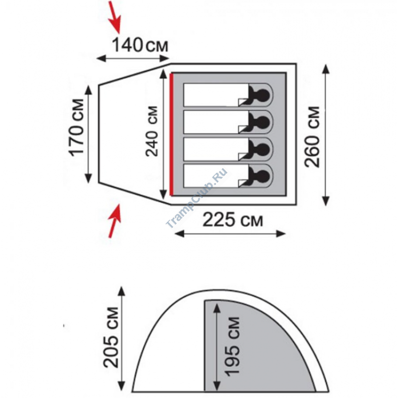 - Внутренняя палатка: 100% дышащий полиэстер
