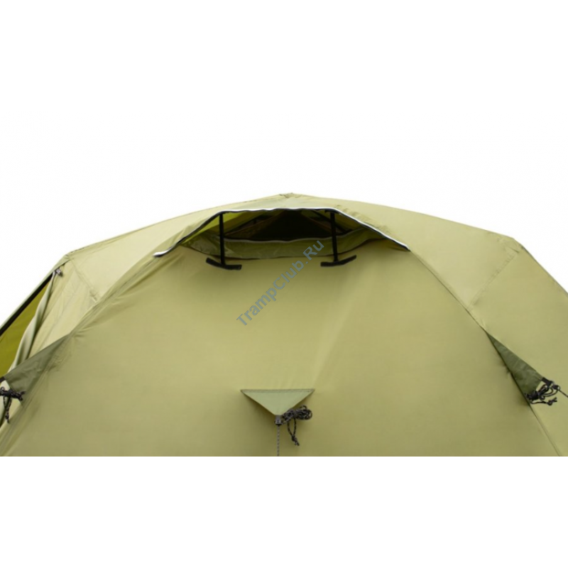Двухместная экспедиционная палатка Tramp Peak 2 (V2) модель TRT-25 с двумя входами и двумя тамбурами увеличеного объема и площади. Дополнительная консольная дуга увеличивает площадь и внутренний объем тамбура, повышает ветроустойчивость и ветрообтекаемость палатки. Превосходные характеристики материалов, надежная конструкция, проверенная в различных условиях, прочные алюминиевые дуги — вот то, что нужно настоящему путешественнику!