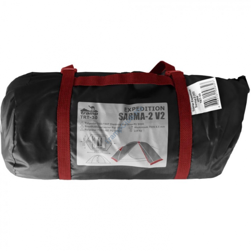 Палатка Tramp экспедиционной серии SARMA 2 (V2) модель TRT-30 обладает повышенной устойчивостю к сильному ветру, снегу и дождю благодаря особой конструкции каркаса – дуги пересекаются в двух точках – и предназначена для использования в самых суровых погодных условиях.
