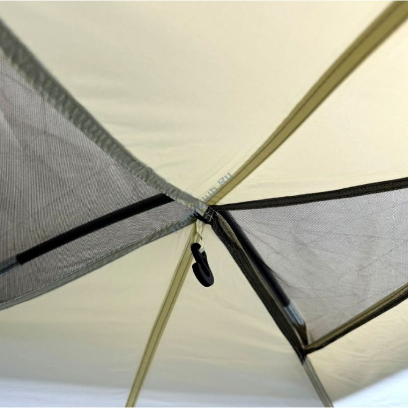 - Внешний тент палатки устойчив к ультрафиолетовому излучению и имеет пропитку, задерживающую распространение огня