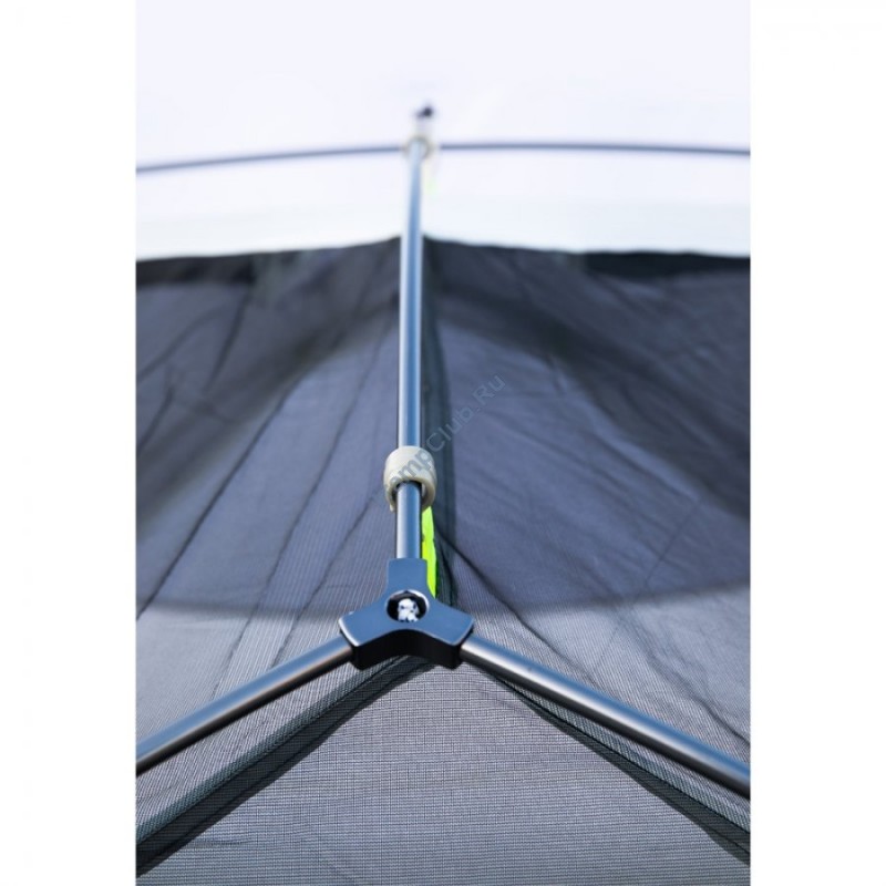 Свободностоящая хабовая конструкция каркаса обеспечивает очень быструю, простую , интуитивно понятную установку, больший, по сравнению с палатками других конструкций, жилой объем спального отсека и повышенную ветроустойчивость.