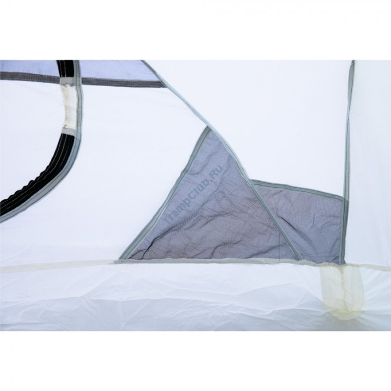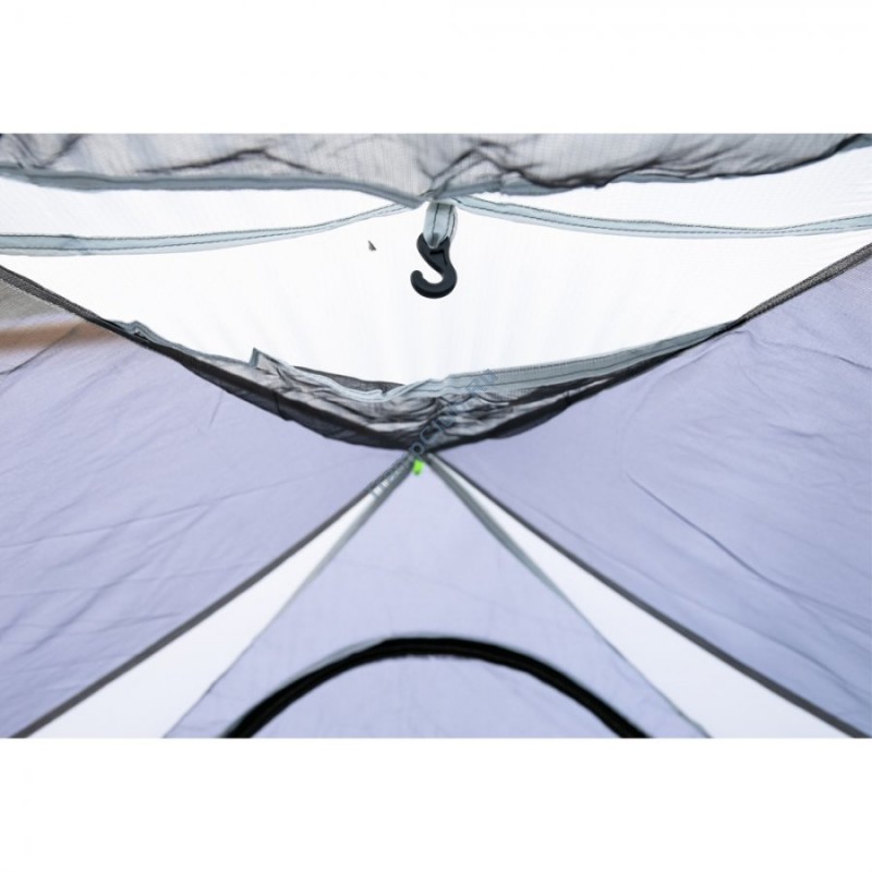 Внутренняя палатка практически полностью выполнена из сетки благодаря чему палатка прекрасно вентилируется, в ней практически не скапливается конденсат, и вам будет комфортно даже жаркой летней ночью.