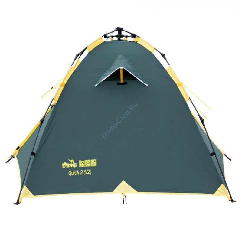 Универсальная 2-х местная туристическая палатка Tramp Quick 2 (V2) модель TRT-096 – простая в установке, хорошо вентилируемая модель с двумя входами и двумя тамбурами.