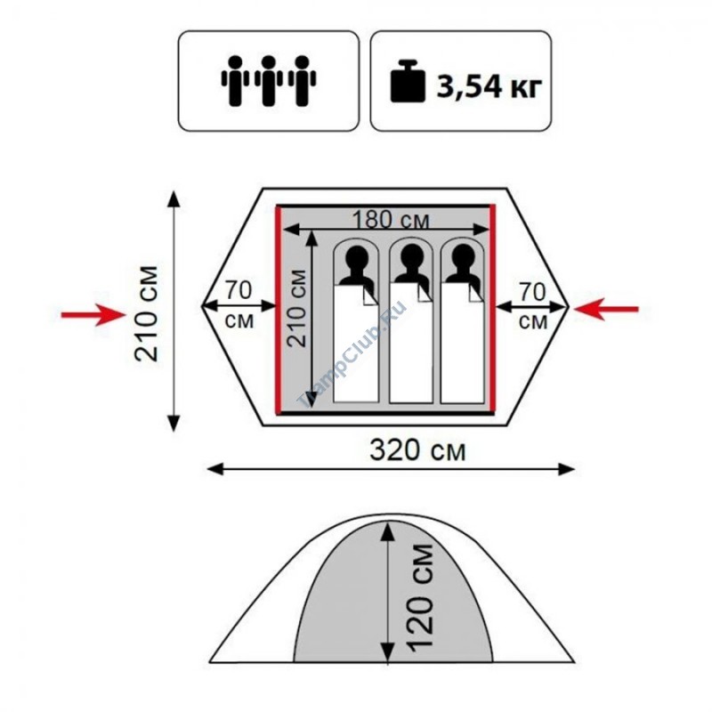 Трехместная туристическая палатка серии Tramp Lite Tourist 3 модель TLT-002 предназначена для любительских походов легкой категории сложности и непродолжительных путешествий в теплое время года.